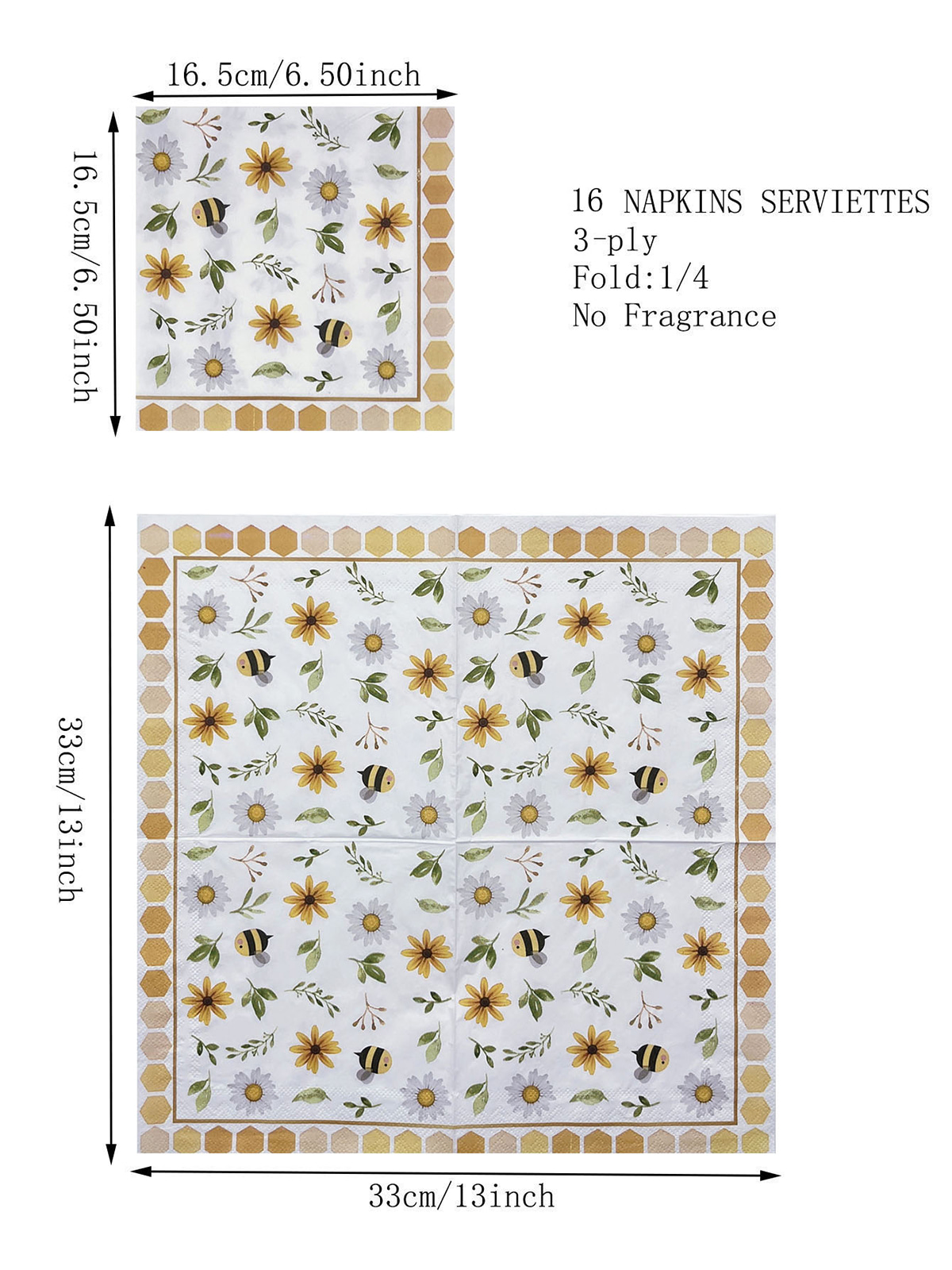 Serbet Pringting makan siang Lebah dan Bunga 3 Lapis, Serbet Kertas Hias untuk Makan Malam, Pesta ini berukuran 13 x 13 inci saat dibuka, 6,5 x 6,5 inci saat dilipat.