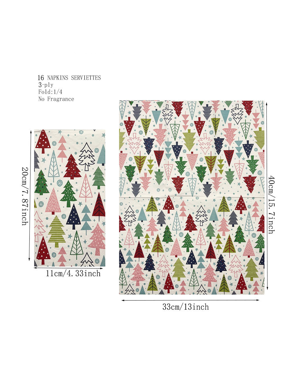 Serbet Tamu Kertas Natal 3 lapis, Serbet Pesta Hias Pohon Natal ini berukuran 13 x 15,8 inci saat dibuka, 4,3 x 7,9 inci saat dilipat.