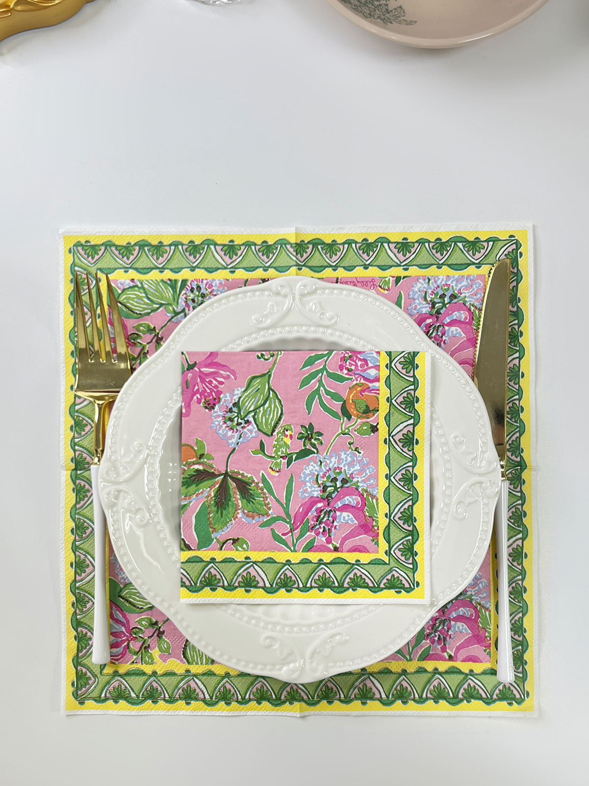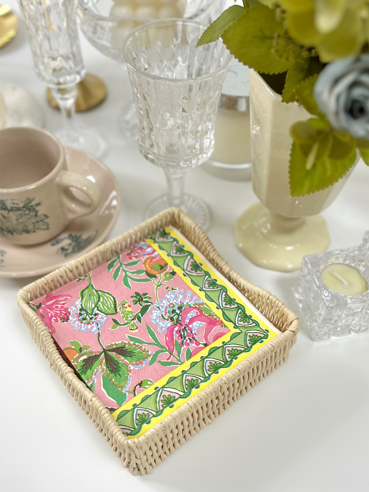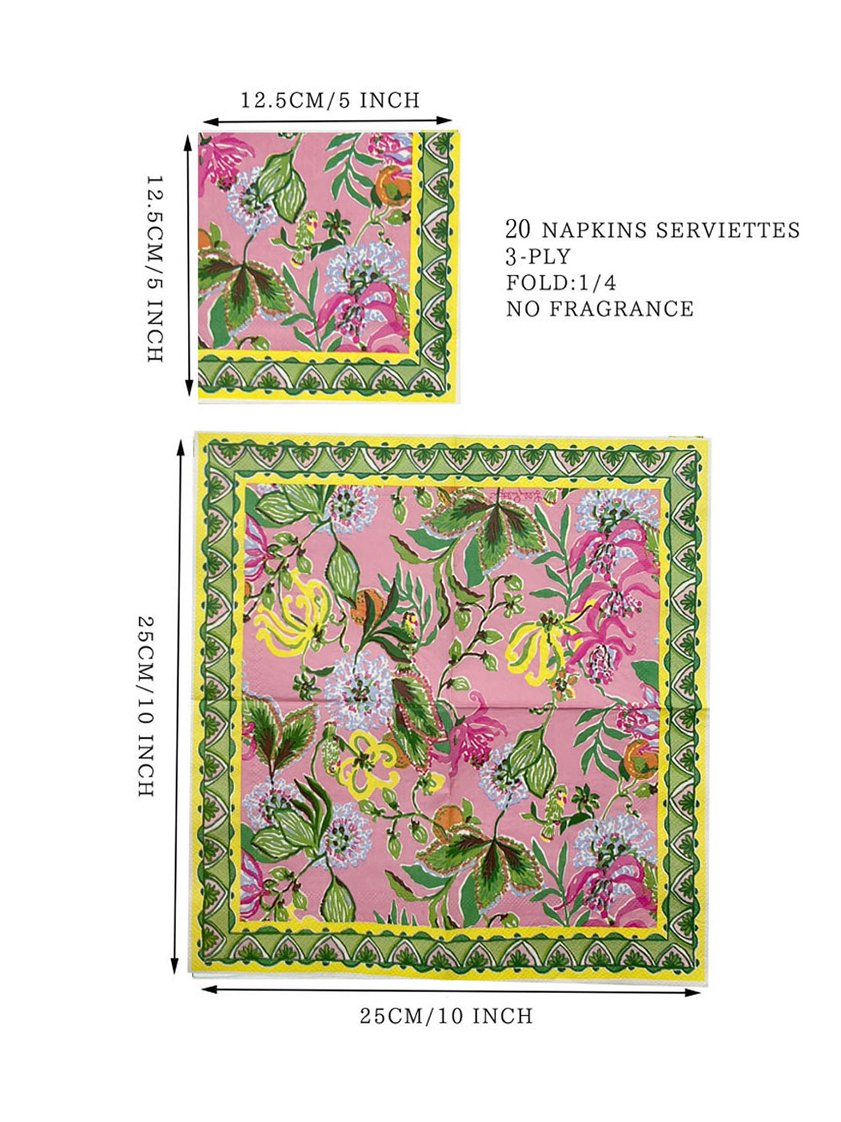 Serbet Kertas Koktail Bunga Cat Air 3 Lapis Sekali Pakai, Serbet Minuman Hias Bunga Liar ini berukuran 10 x 10 inci saat dibuka dan 5 x 5 inci saat dilipat.