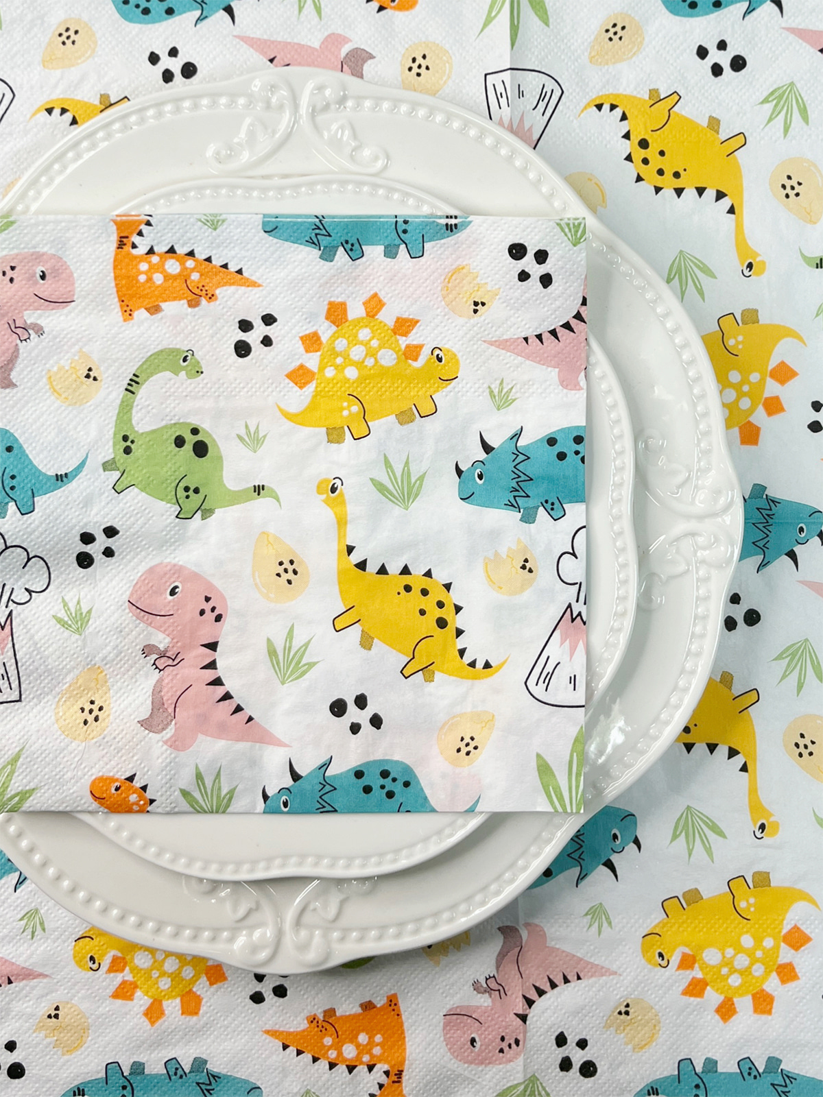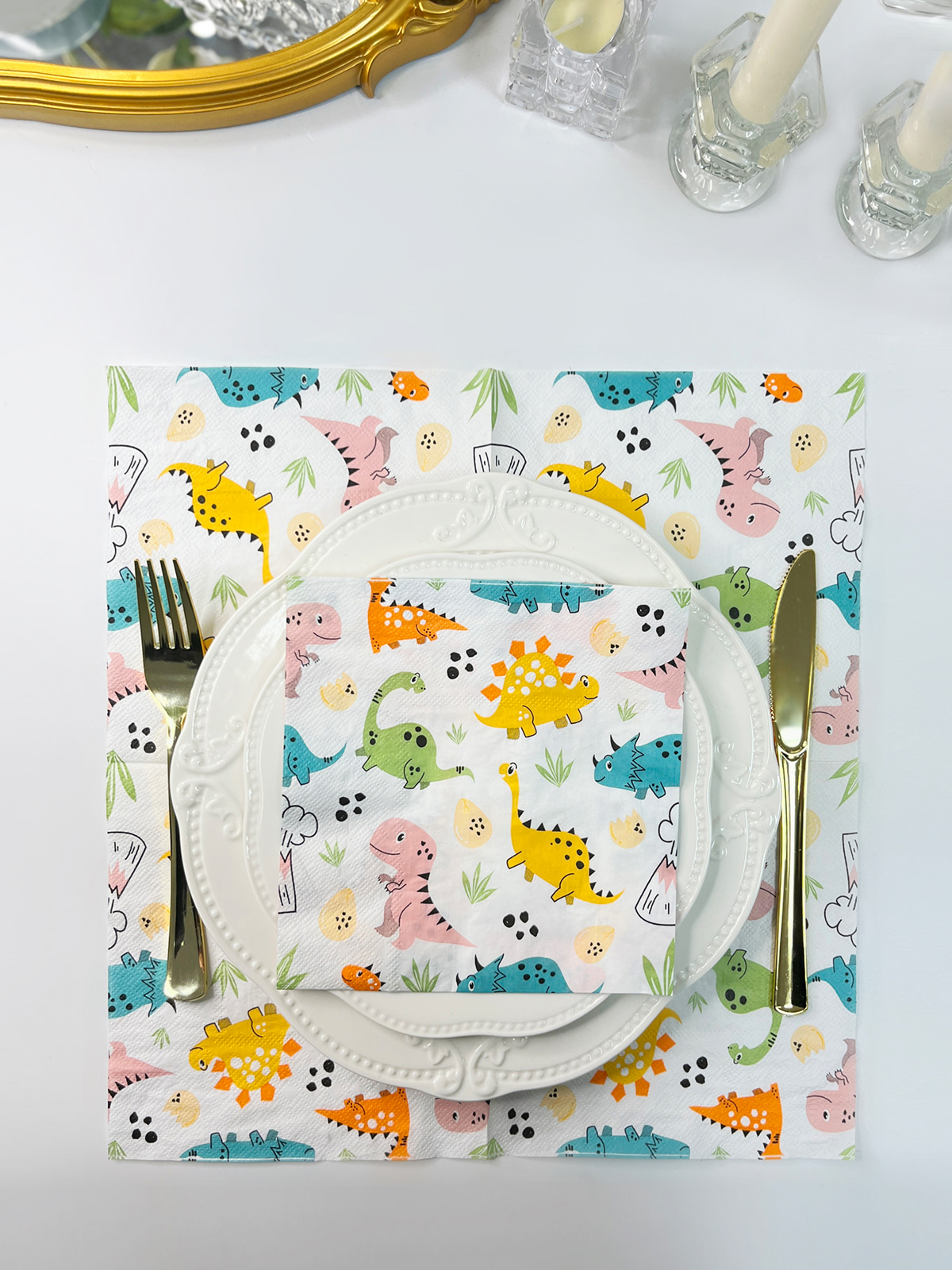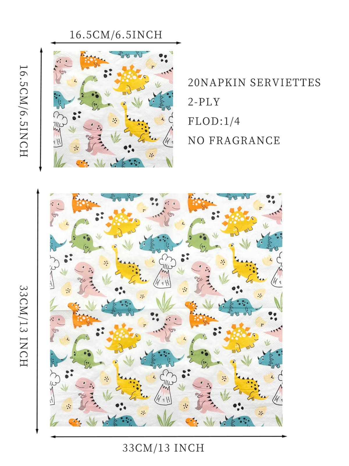 Cetakan dinosaurus yang penuh warna dan hidup menjadikan serbet kertas ini luar biasa untuk pesta bertema dinosaurus atau perayaan ulang tahun yang disukai anak-anak.