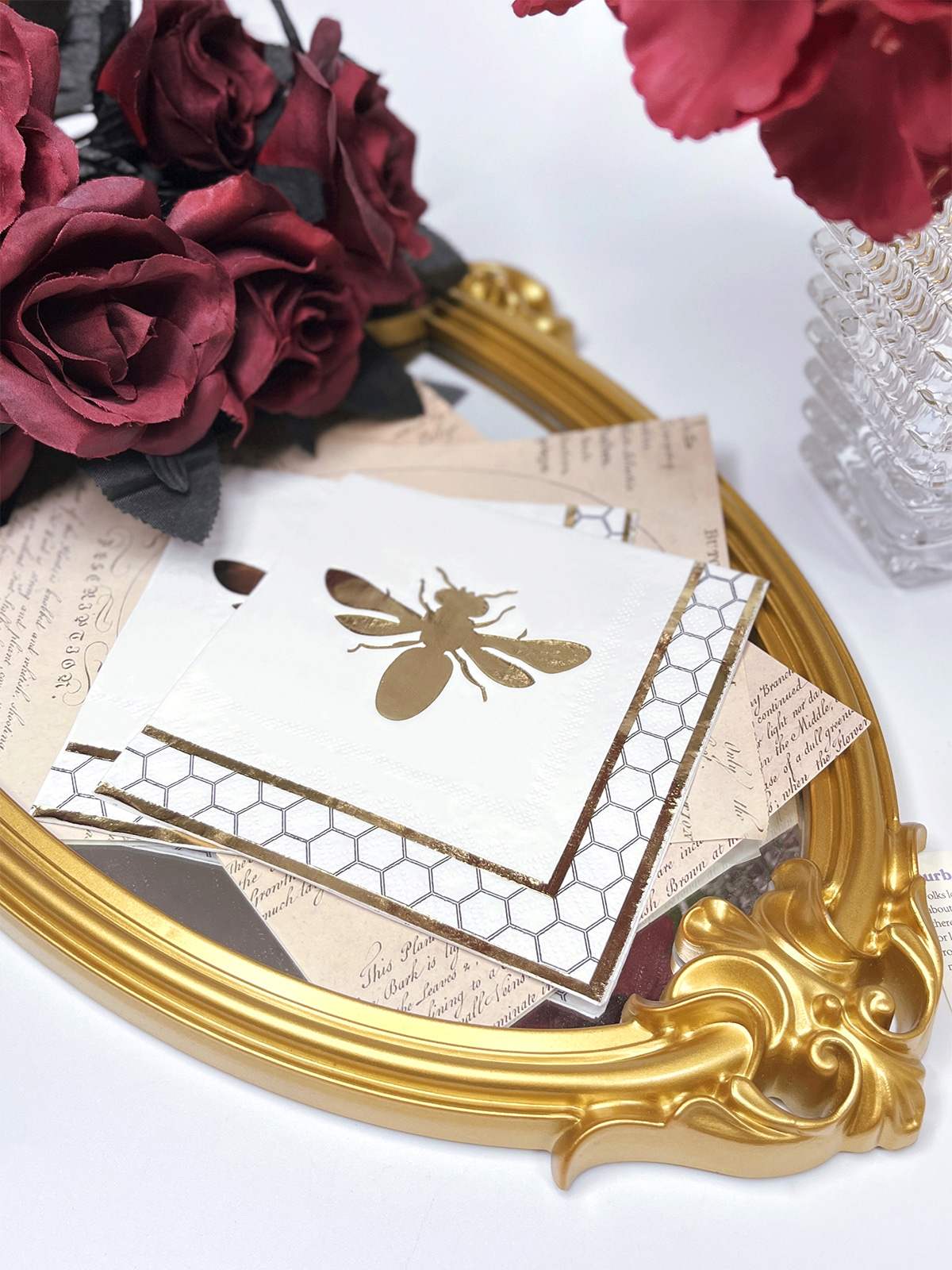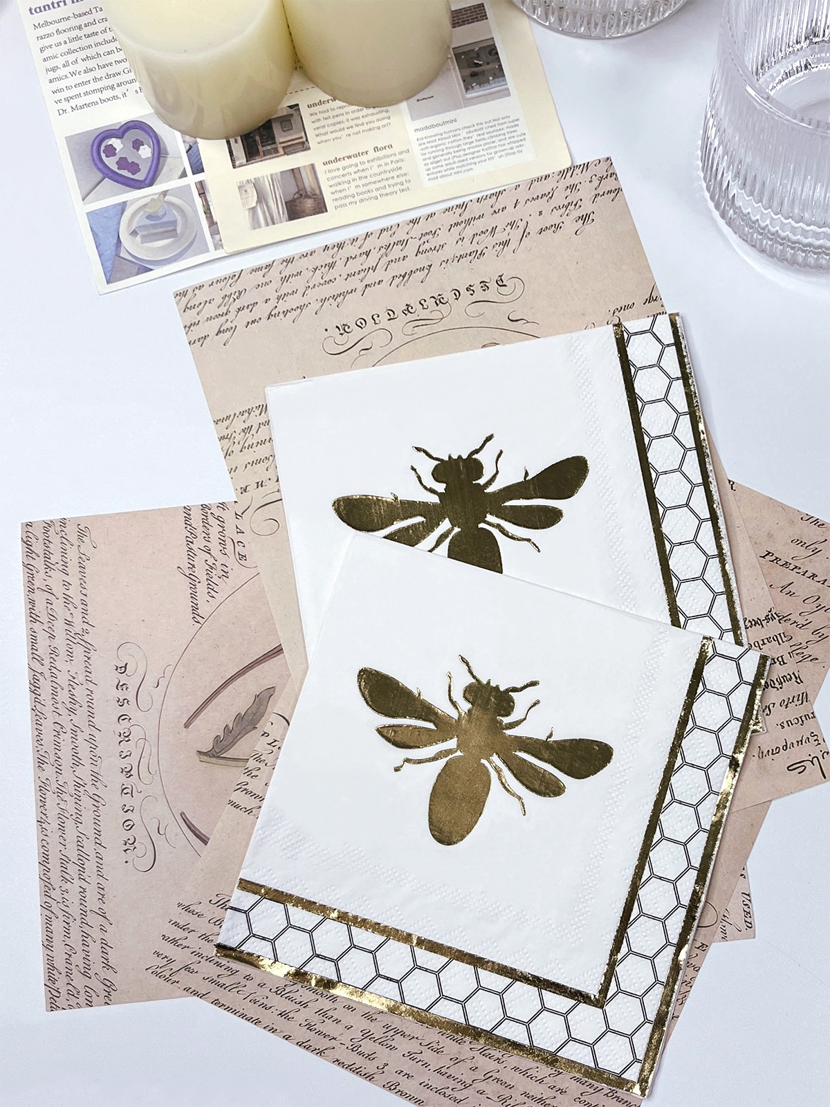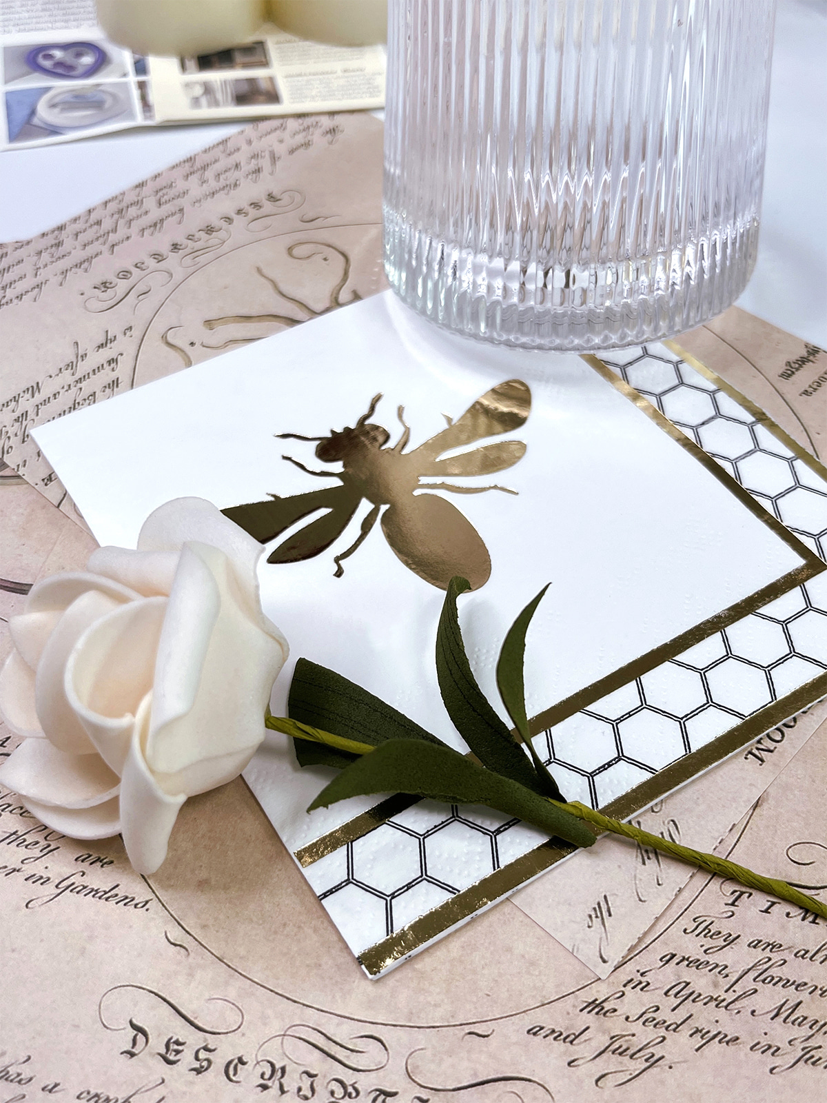 Serbet koktail lebah foil emas dirancang dengan jelas dengan mempertimbangkan keanggunan, menjadikannya dekorasi pesta berkualitas tinggi yang cocok untuk pernikahan, makan malam, kamar mandi, dan banyak lagi.
