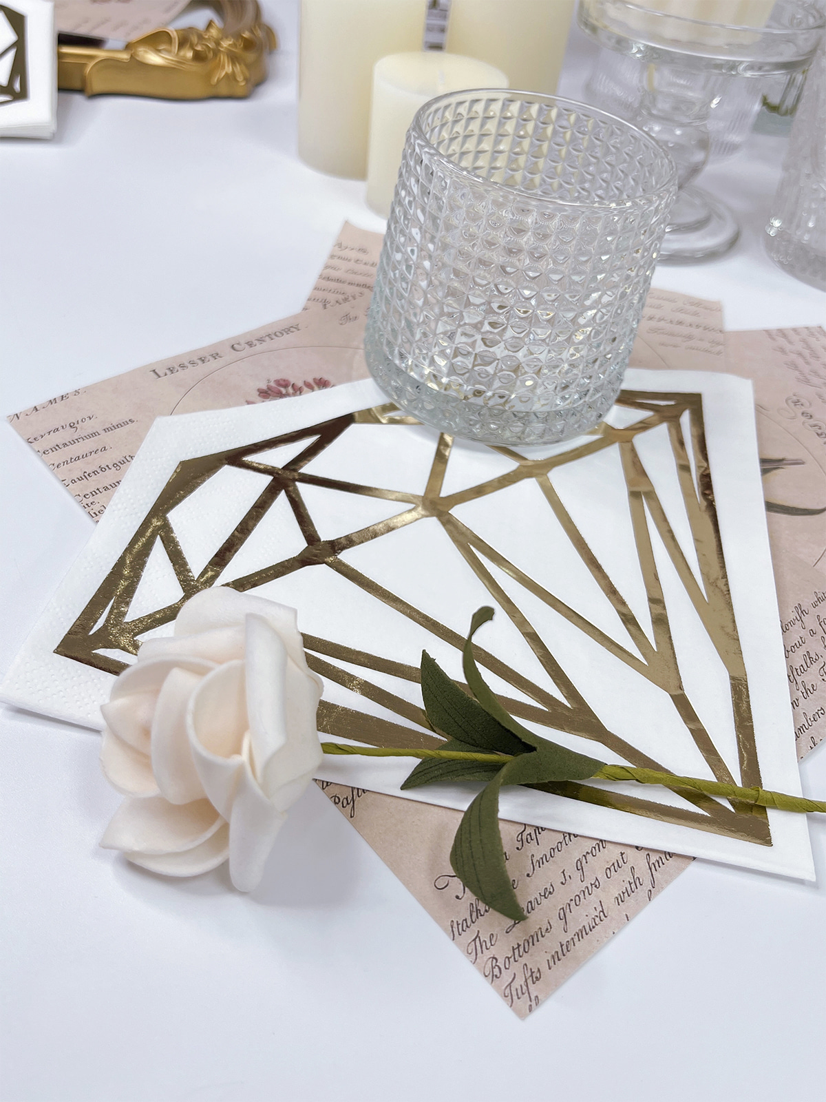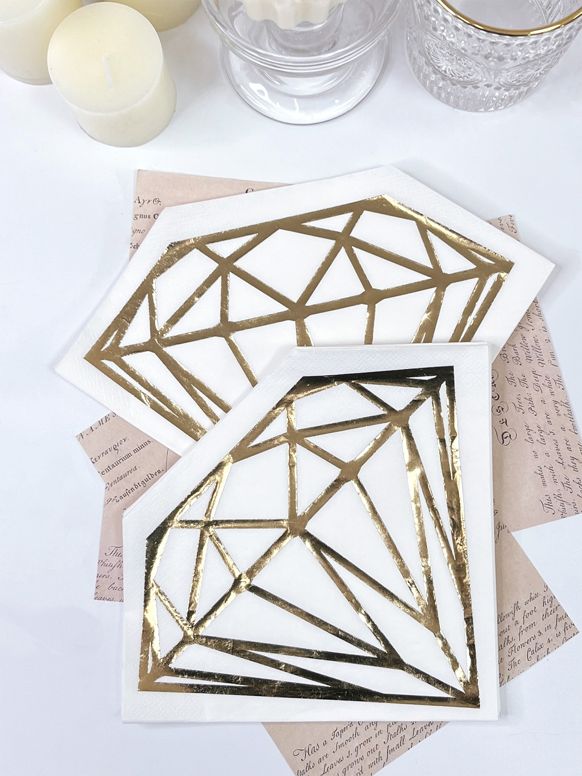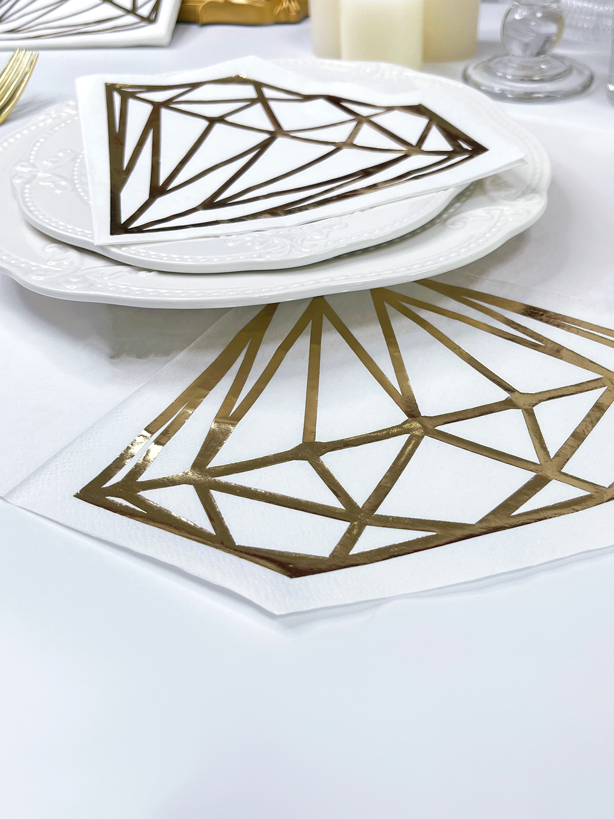 Serbet kertas berlian cantik menampilkan cetakan foil emas yang elegan dan dekorasi desain die-cut, menambahkan sentuhan kebaruan dan kecanggihan pada acara spesial Anda. Buat tamu Anda terkesan di acara bridal shower, dekorasi lamaran, pernikahan, dan pesta pertunangan dengan serbet menakjubkan ini.